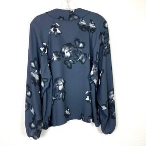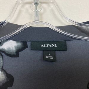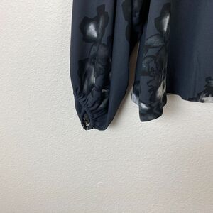 ALFANI Women's V-Neck Semi Sheer Blouse Size S Gray Floral Balloon Sleeve Office