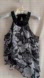 ALFANI size 10. Elegant blouse featuring multiple ruffle layers tilting to the left side. Grecian neckline is adorned with black jewels. Fabric is floral black and white 100% polyester. Pre-owned, excellent condition.