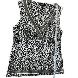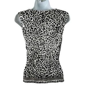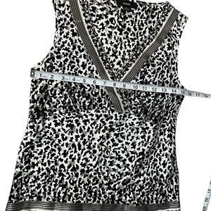 ALFANI Y2K Vintage Animal Print 100% Silk Blouse V-Neck Size 2 Tan/Back Retro