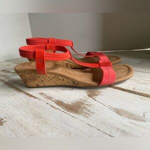 ALFANI coral cork wedge sandals size 9 faux leather summer dressy casual EUC