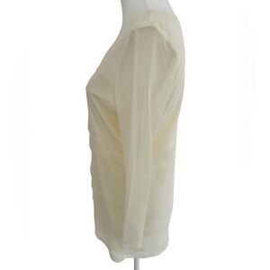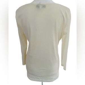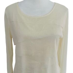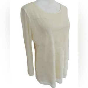 ALFANI ivory bandage style netting top, lined, size M. Asymmetric strips of material across the front to add interest, unlined long sleeves. Scoop neckline. 100% nylon.