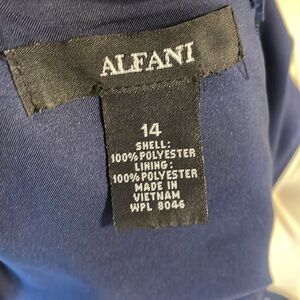 ALFANI navy blue shift dress tank / square neck grommets accents zip back sz 14
