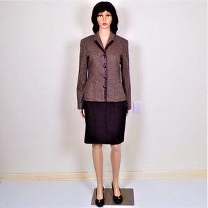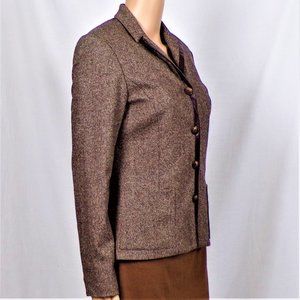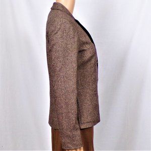 ALFANI size 2 brown (mostly) wool-blend tweed blazer leather-like trim DC only
