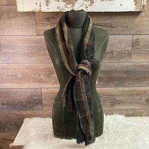 ALFANI CHENILLE Rayon Fringe Scarf Wrap Plaid Made in Italy 13 1/2”Wx66”L Unisex