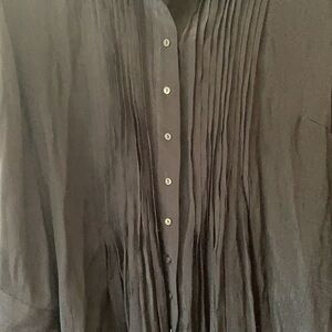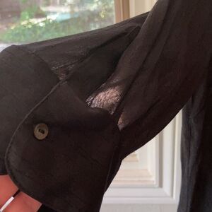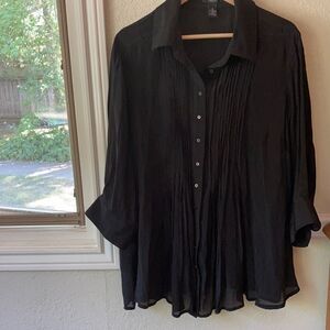 ALFAN WOMAN 1X Black Sheer Button Down Blouse