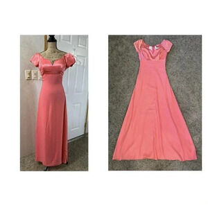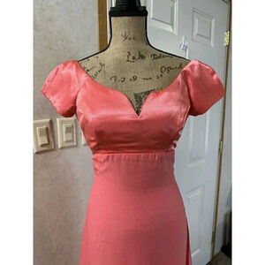 ALFRED ANGELO Vintage Prom Dress Plunge Sweetheart Neck Pink Orange Cup Sleeve