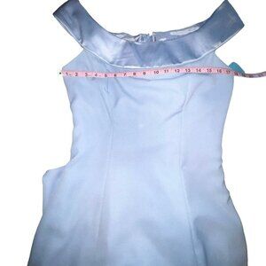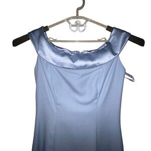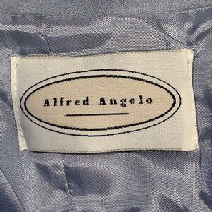 Make a statement at your next formal event with this stunning Alfred Angelo light blue maxi dress. The dress features a flattering fit and flare style, with a boat neckline and sleeveless design. The dress is crafted from high-quality satin fabric and has a zip closure for ease of wear. Perfect for weddings, parties, and other formal occasions, this dress will make you feel confident and elegant. The dress is a size 12 and has a dress length of long. The dress is brand new with tags and is sure to turn heads.