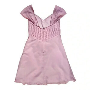 This stunning ALFRED ANGELO Signature dress in pink chiffon is perfect for any formal occasion. The dress has a sweetheart neckline and cap sleeves, with a fit and flare style that flatters any figure. The back is backless, adding an extra touch of elegance. The dress is brand new with tags and has a zip closure. It is fully lined and collarless, making it comfortable and easy to wear. The dress is knee-length, making it perfect for spring and summer events.