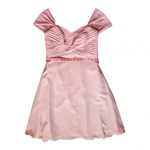 ALFRED ANGELO Pink Chiffon Fit & Flare Dress Sweatheart Neckline Cap Sleeve 12