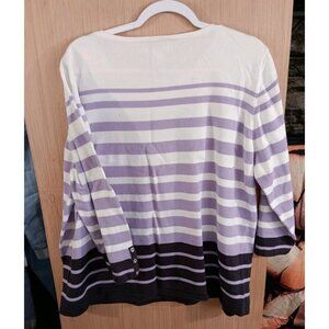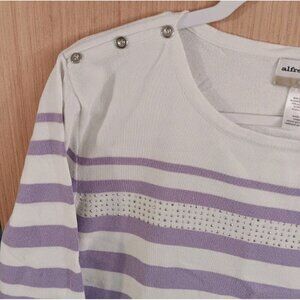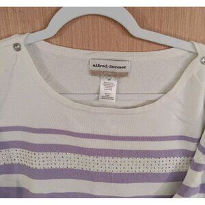 ALFRED DUNNER 2X Pullover Sweater Rhinestones Striped Purple White 3/4 Sleeve