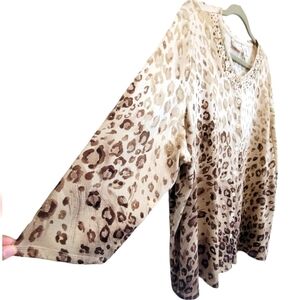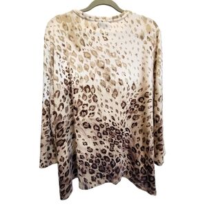 ALFRED DUNNER 3X Beaded Embellished Animal Print Button Down Cardigan