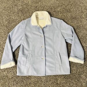 Alfred dunner light blue fleece lined button down jacket. In excellent pre-owned condition.