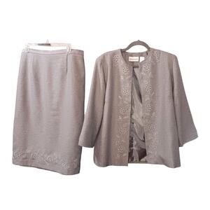 ALFRED DUNNER Embroidered Suit LG 12/14 Jacket Skirt Career Office Dressy Event
