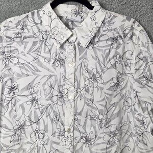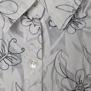 ALFRED DUNNER Floral Blouse Semi Sheer Top 18 White Black Boho Office Siren