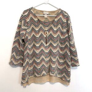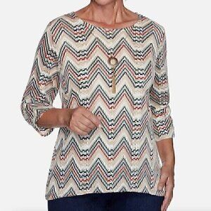 ALFRED DUNNER Hunter Mountain Zigzag Necklace Top Cream Beige Gold Chevron Knit