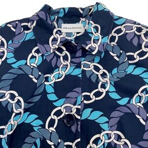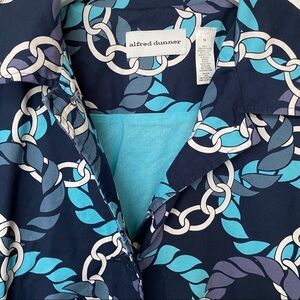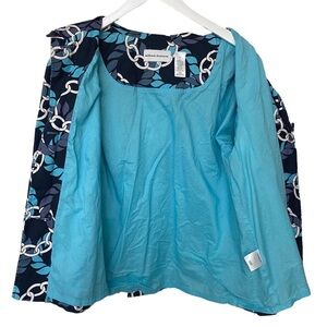 ALFRED DUNNER Jacket Size 14 Nautical Print Blazer Navy Blue Turquoise