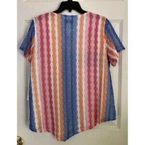 ALFRED DUNNER PARADISE ISLAND MULTICOLOR SLIP NECK SHORT SLEEVE, SPLICED STRIPLE, SHARKBITE HEMLINE, KEYHOLE NECK, PULLOVER, LIGHTWEIGHT 079