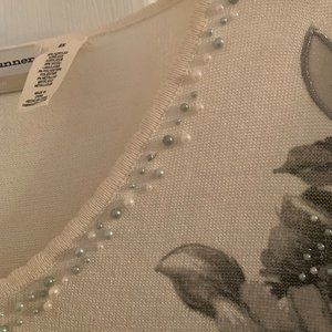 ALFRED DUNNER PLUS SIZE SWEATER 2X. Beautiful light pull over sweater. Great with slacks. Top has beading and embroidered flowers. The flowers go down one of the sleeves making for an interesting detail. New without tags Never worn. No snags, stains or pulls. Lost weight so this sweater needs to find a new owner who can wear it. Comes from a smoke free and pet free home.