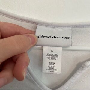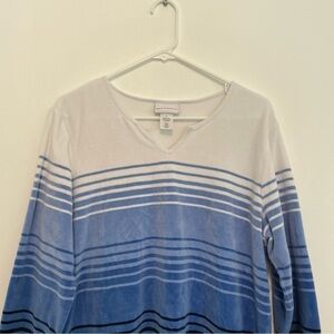 ALFRED DUNNER Precious Jewels Soft Striped Velour Top White Blue Navy 3/4 Sleeve