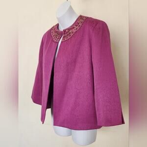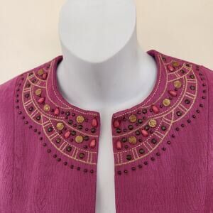 ALFRED DUNNER Purple Pink Beaded Bejeweled Collar Open Front Blazer Jacket 6P