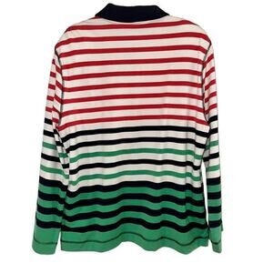 This pre-loved Alfred Dunner sweater is in excellent condition and features vibrant red, green, blue, and white stripes.