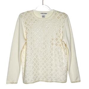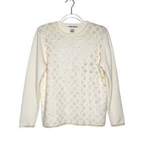 ALFRED DUNNER Vintage Sequin Embellished Long Sleeve Sweater Knit Cream Size S