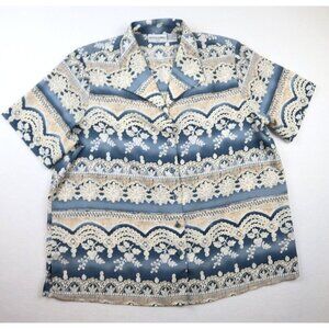 ALFRED DUNNER - WOMEN'S BLUE PRINT BUTTON-UP TOP - SIZE 18P