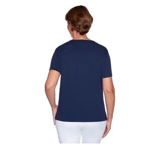 ALFRED DUNNER WOMEN'S Small Floral Anchor Embroidery Short Sleeve Top