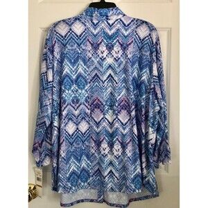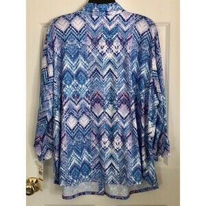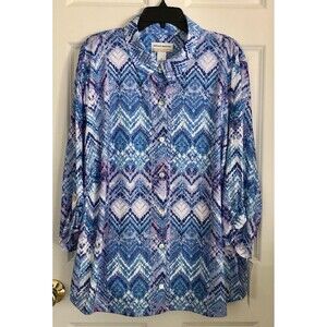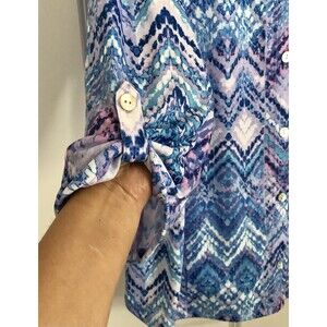 ALFRED DUNNER WOMEN'S TOP COLLARED NECK BUTTON DOWN ZIG ZAG 3/4 SLEEVES ROLL 158
