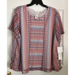 ALFRED DUNNER WOMEN'S TOP TEXTURED STRIPS NEPTUNE BEACH SIDE RUCHING MULTICOLOR