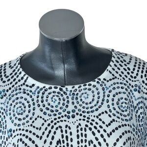ALFRED DUNNER Woman Blue White Black Swirl Sequins Sweater Top Women's 2X