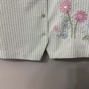 . Front floral embroidery with buttons