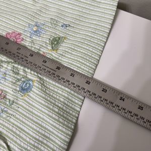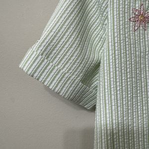ALFRED DUNNER Womens Size 14P Seersucker Floral Embroidery Button Up Top Green