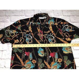 ALFRED DUNNER Womens Size 16 Black Red Gold Chain Silk Button Front Blouse
