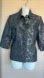 ALFRED DUNNER Elegant navy & silver jacket, gathered @ waist on each side, Beautiful textured paisley patterned brocade tapestry fabric, matching covered buttons, pockets, 3-4 sleeves.