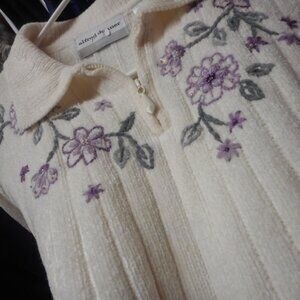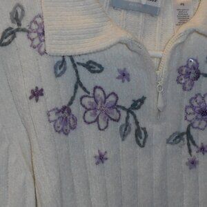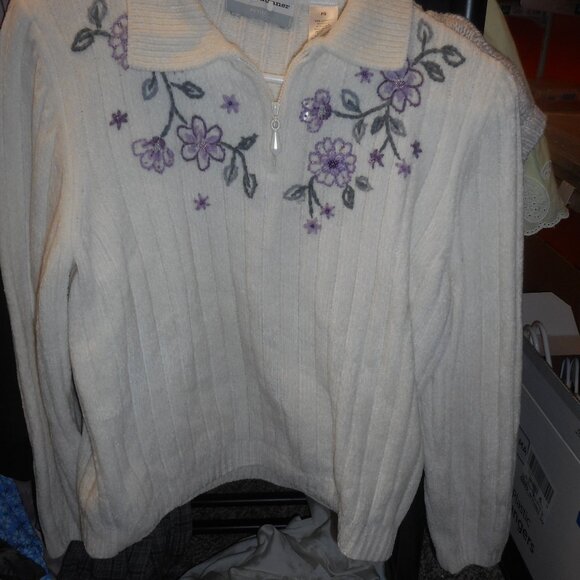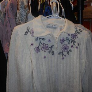ALFRED DUNNER women's top, sweater, purple and off white in color, sz PS