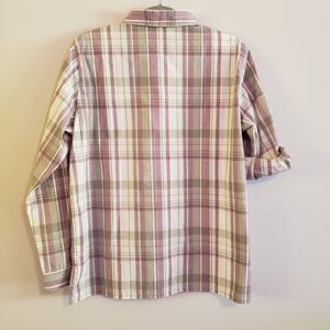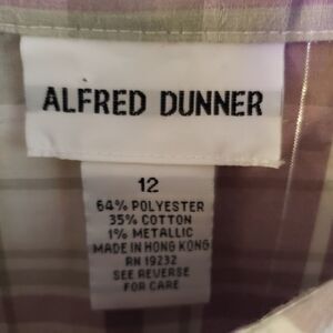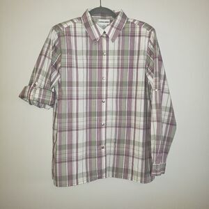 ALFRED DUNNER WHITE PURPLE GREEN SILVER PLAID BUTTON DOWN SHIRT SIZE 12