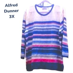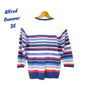 ALFRED Dunner American VINTAGE 90's Striped Knit Sweater white pink blue Sz 3X