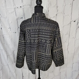 Alfred Dunner Open Style Jacket Tribal Geometric Stitching Decorative Lightweight