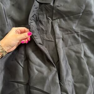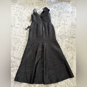 Elegant black maxi dress. Features a V-neck and bow detail and fully lined. Perfect for formal occasions. I purchased for my daughters wedding, however I am just to busty for this style, I included a photo of me in the dress, usually wear a 16 but tried this anyway. I am a 34DDD so someone a bit smaller in the chest would look great in the dress.