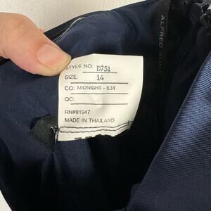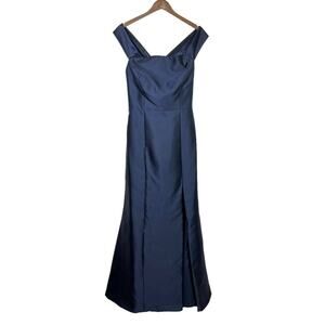 ALFRED SUNG D751 Midnight Navy NWT Off the Shoulder Criss Cross Back Satin Dress