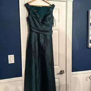 Elegant green maxi dress. Sleeveless with a V-neckline. Perfect for formal occasions.