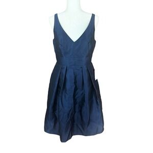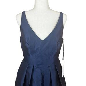 ALFRED SUNG MIDNIGHT BLUE V- NECK SATIN COCKTAIL DRESS SIZE 8 NWT