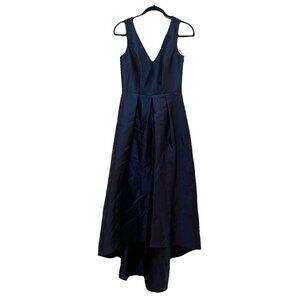 ALFRED SUNG Midnight Navy Sateen Twill High Low Cocktail Dress Gown Sz 4 NWOT