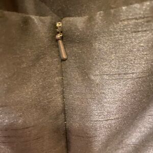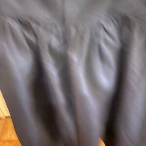Navy blue halter styled dress, slanted pockets in front. Halter closure with hook. Hidden zipper in back. Back is out. Tailored pleating on skirt. Measurements are taken lying flat non-stretched