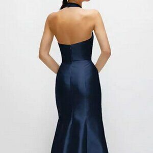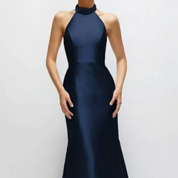 Elegant navy blue maxi dress. Sleeveless with a high neckline. Perfect for formal occasions.