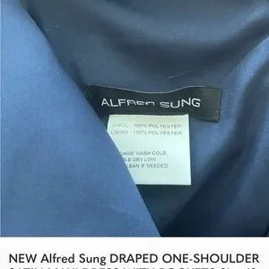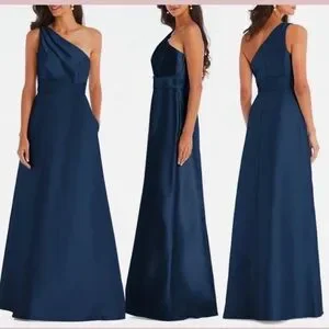 ALFRED SUNG One-Shoulder Navy Maxi Gown New without tags