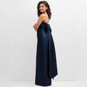 ALFRED SUNG STRAPLESS COLUMN DRESS WITH OVERSIZED BOW IN MIDNIGHT NAVY