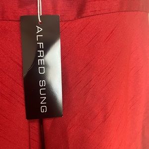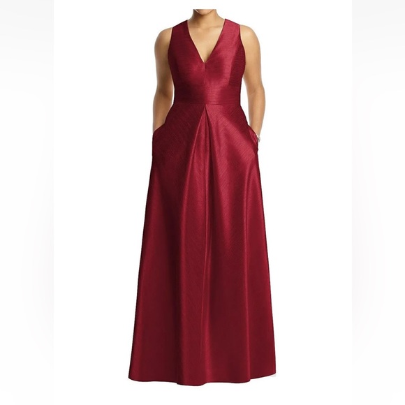 ALFRED SUNG Sleeveless Pleated Skirt Red Long Formal Gown Dress Pockets prom 10