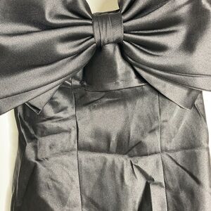 Chic strapless gown with a bold bow accent. Perfect for formal events.